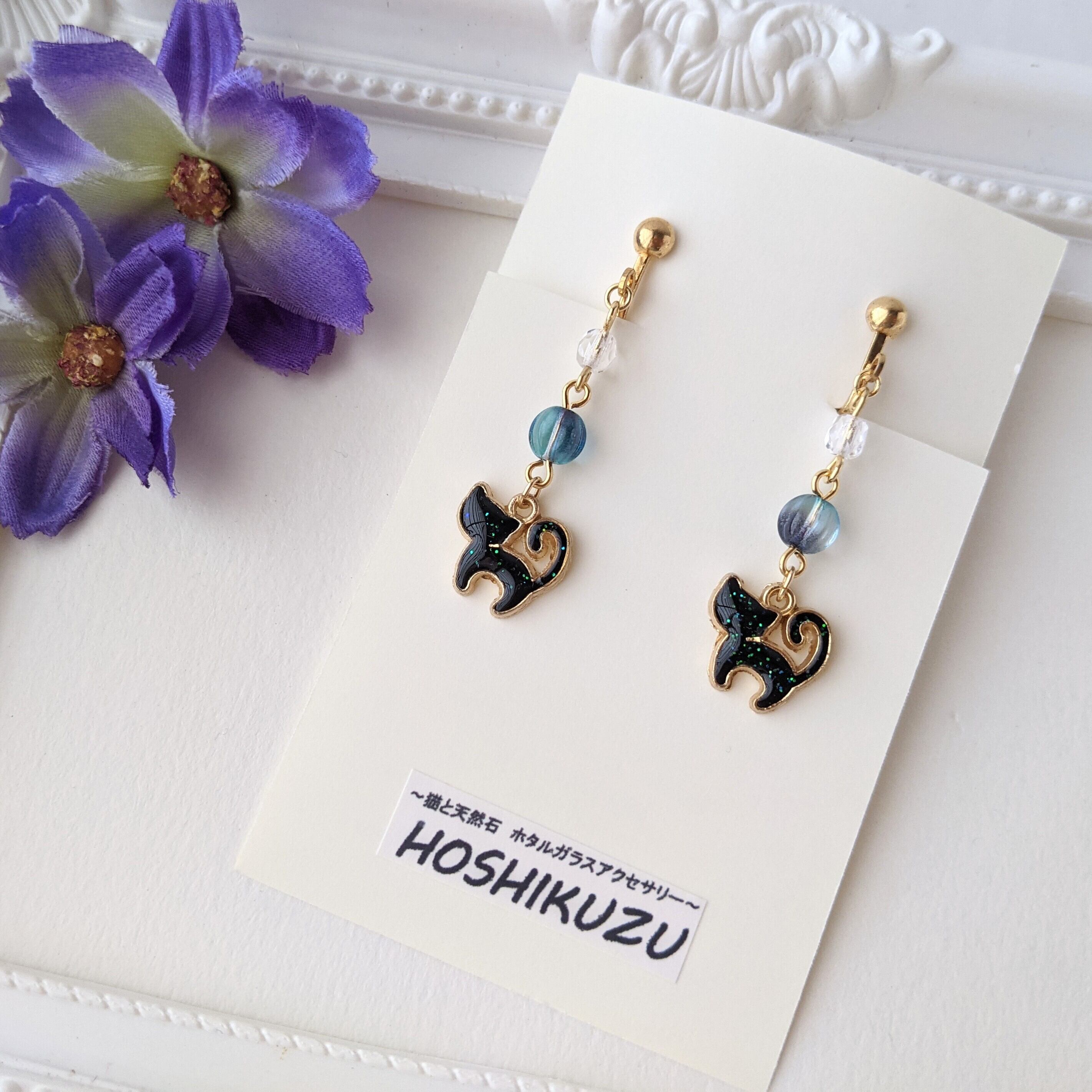 ~キラキラ輝く小さな黒猫がかわいいイヤリング・ピアス~