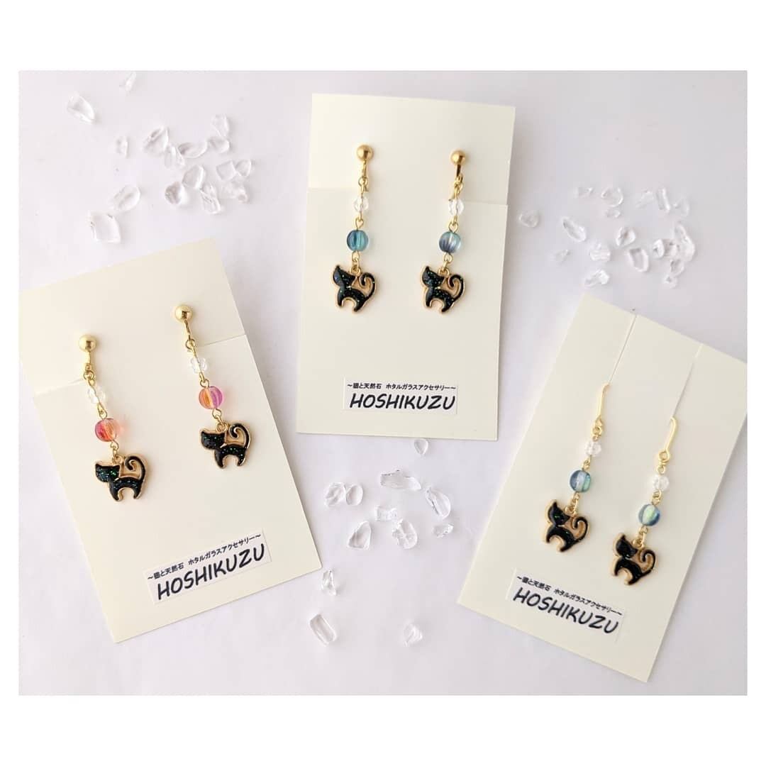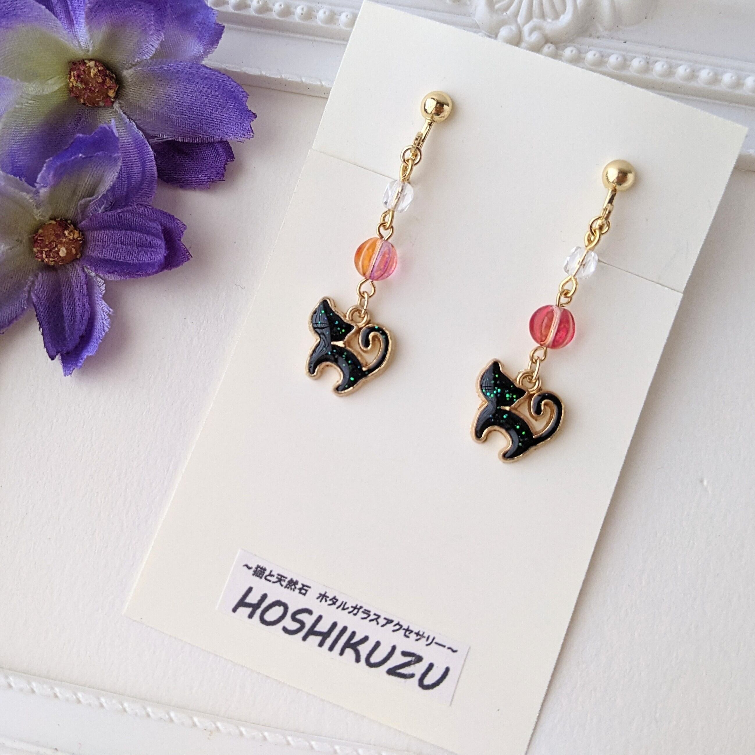 ~キラキラ輝く小さな黒猫がかわいいイヤリング・ピアス~