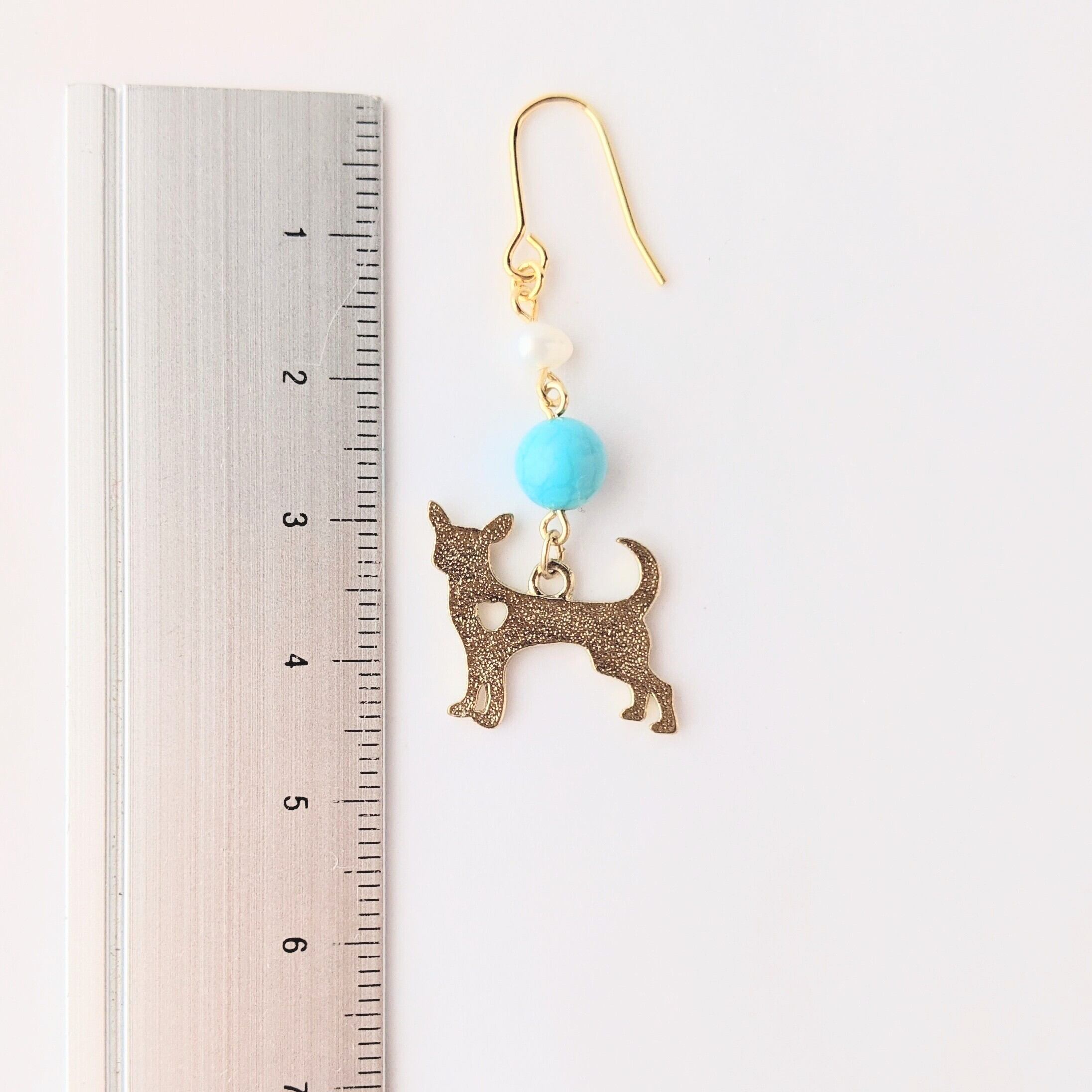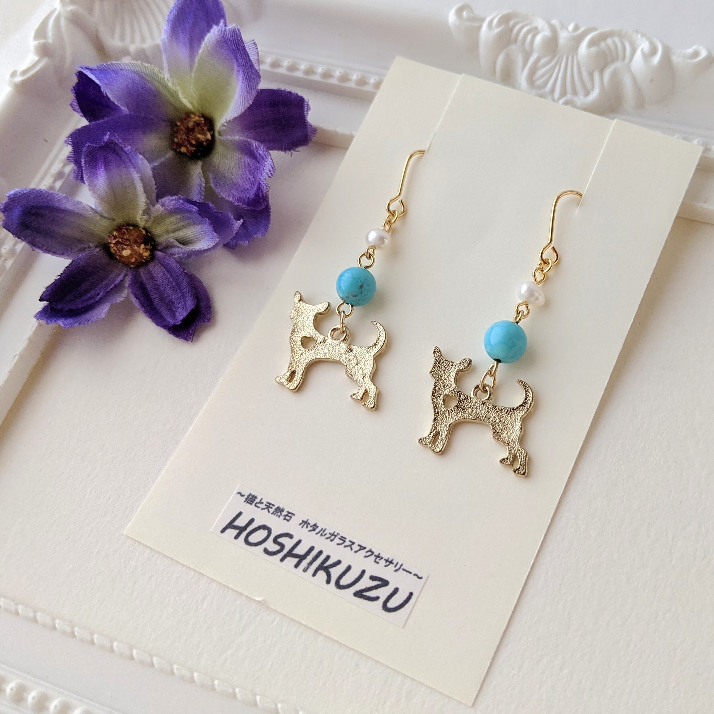 ハート犬のハウライトトルコと淡水パールイヤリング・ピアス