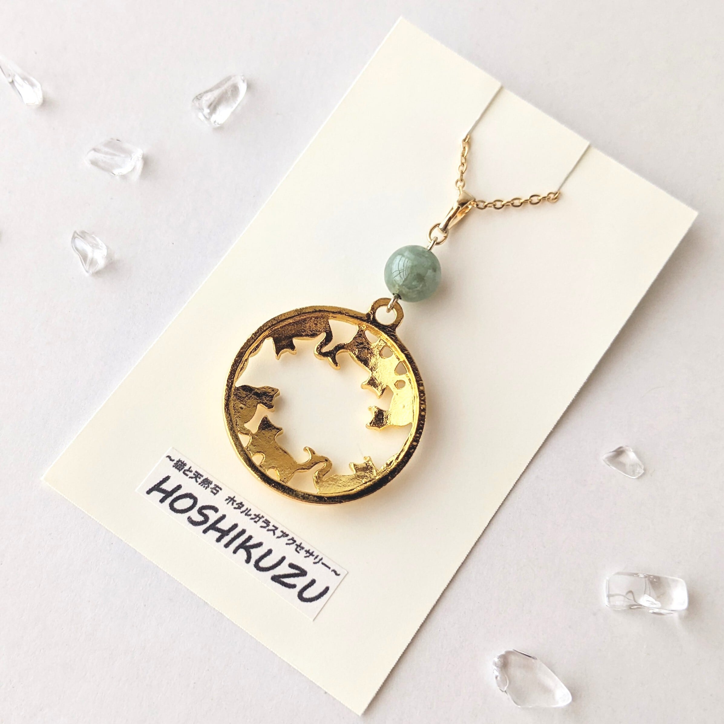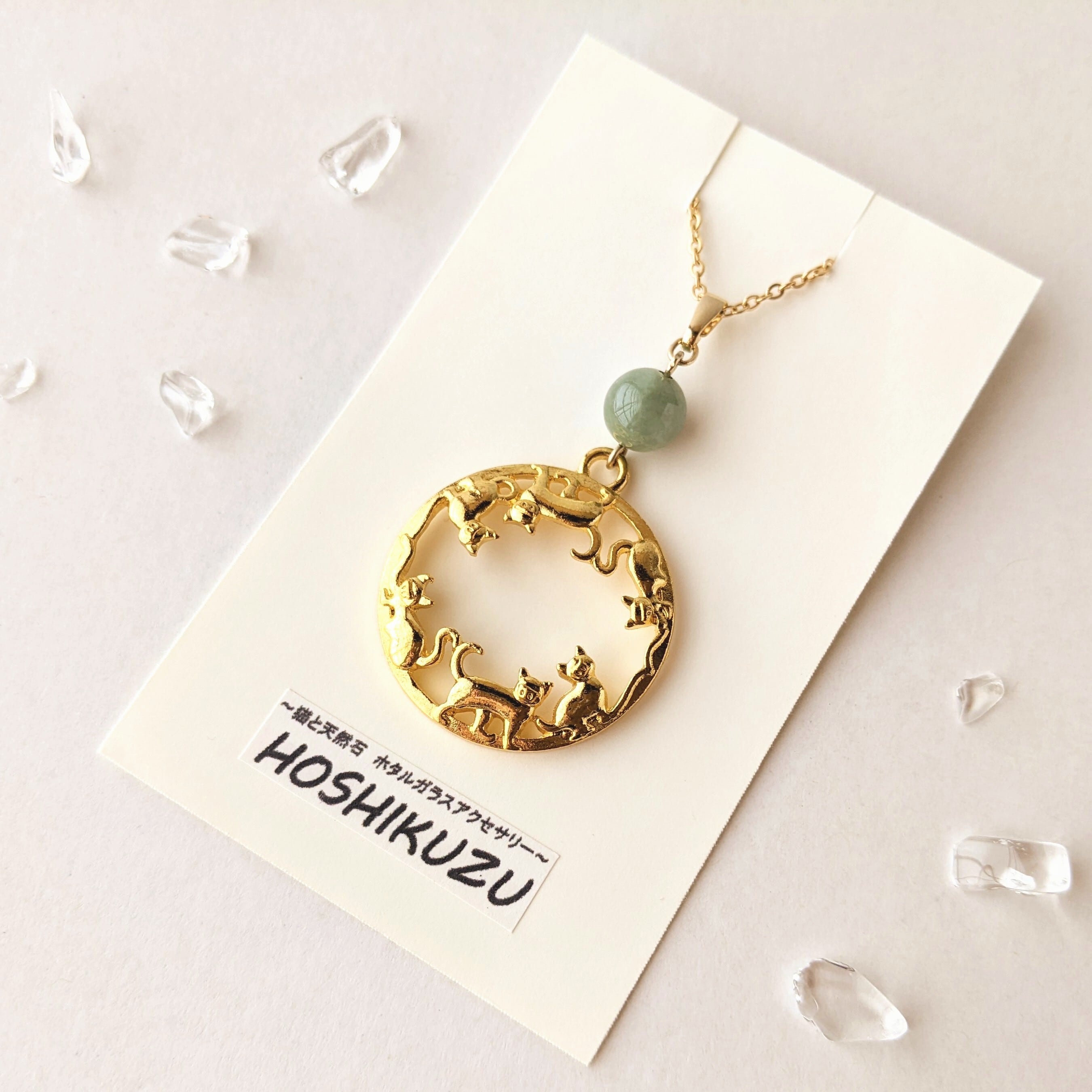 猫がいっぱい♡お散歩猫丸チャームと翡翠(ヒスイ)のネックレス