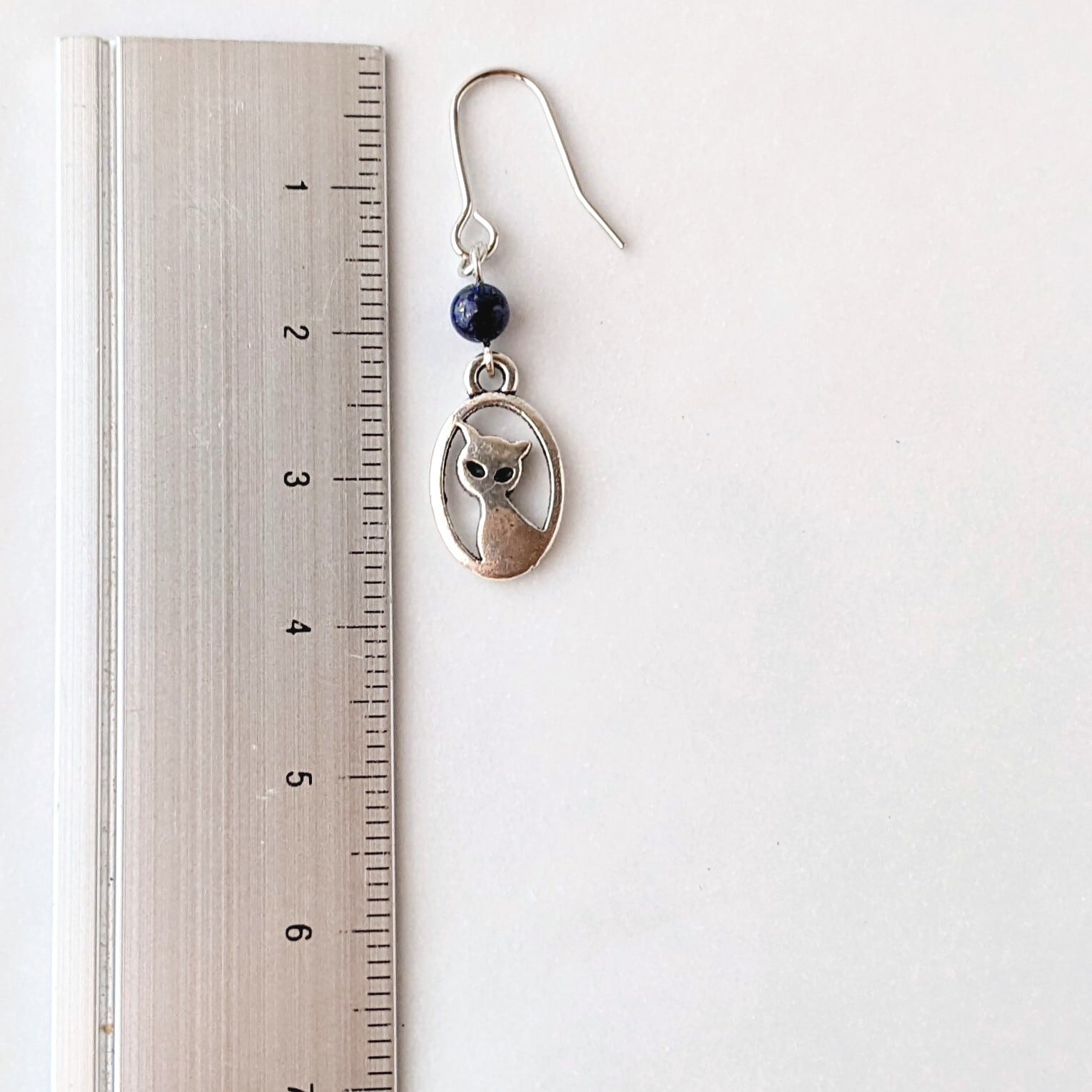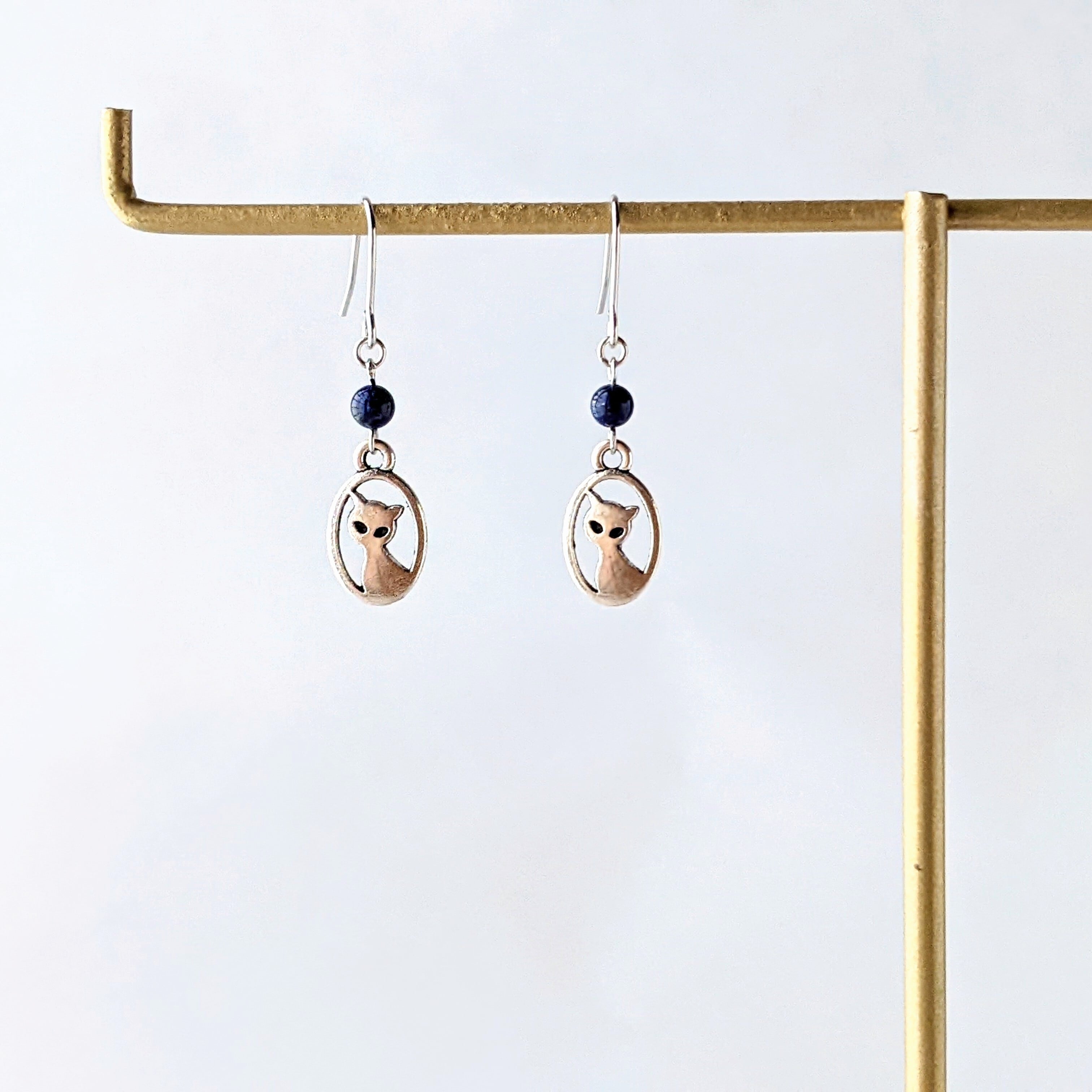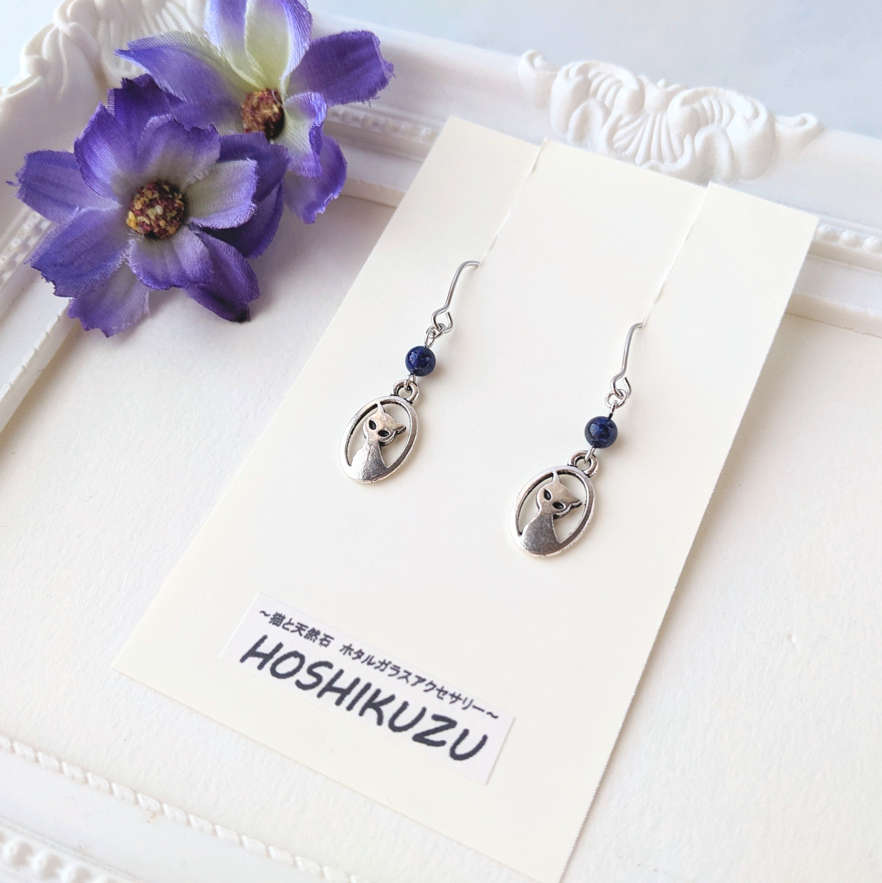 大人可愛い♡小さな猫とラピスラズリのイヤリング・ピアス(シルバー)